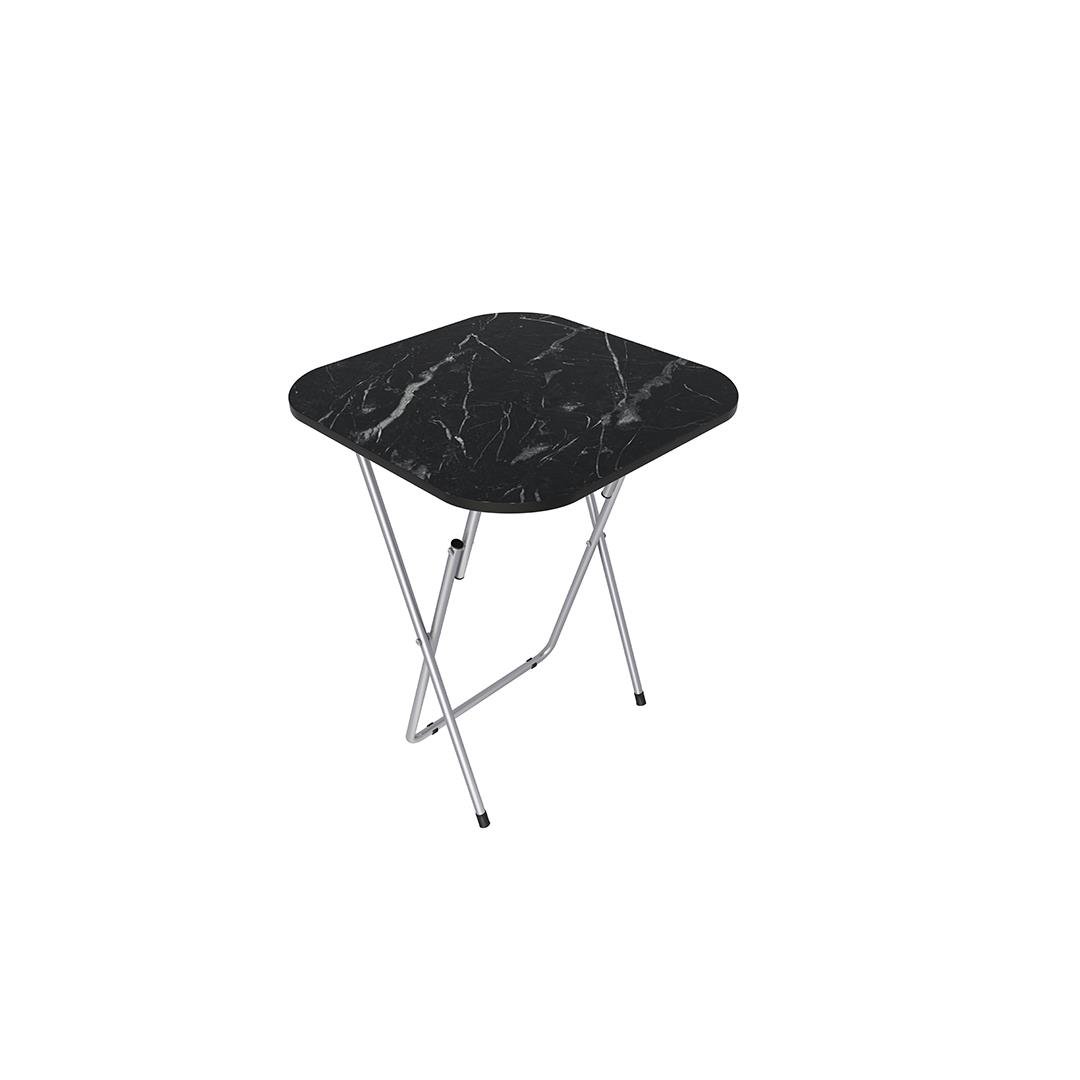 • 18 mm melamine-faced chipboard tabletop • Easy-to-clean, smooth melamine surface • Crash-preventing 1 mm PVC edge bands • Metal legs, 25 mm diameter, strong construction • Electrostatic paint to prevent rust • Multifunction, easy-folding design • 60 × 60 cm