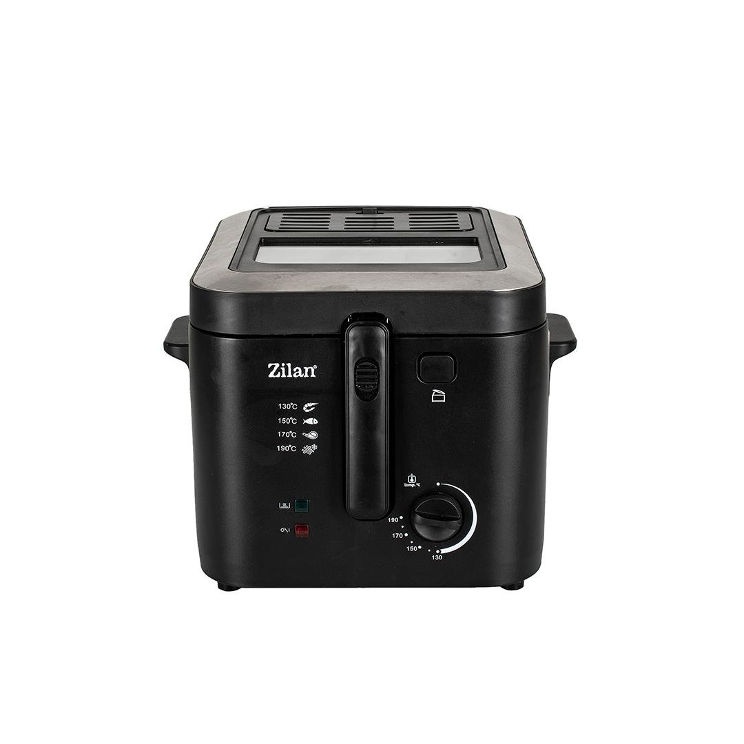 • Capacity: 2.5 liters • Adjustable thermostat from 130-190°C • Stainless steel housing • Pop-up lid with glass viewing window (removable) • Permanent aluminum filter for grease and odor control • Removable inner tank • Chrome-plated basket • 2 indicator lights for temperature/operation • Non-stick coating and non-slip feet • Overheat protection • Easy to use and clean • 220-240V 50/60Hz 1400-1600W